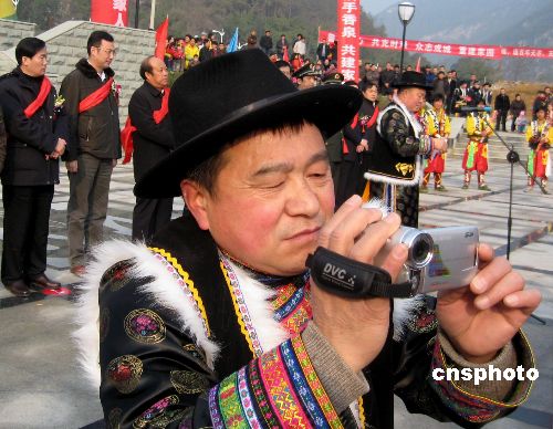 一月八日,四川地震災(zāi)區(qū)首個(gè)異地重建鄉(xiāng)鎮(zhèn)——北川羌族自治縣香泉鄉(xiāng)舉行竣工儀式。“五·一二”特大地震中,北川陳家壩鄉(xiāng)、漩坪鄉(xiāng)和香泉鄉(xiāng)原場鎮(zhèn)遭受嚴(yán)重破壞,后又遭遇“九·二四”洪澇泥石流災(zāi)害。經(jīng)四川省政府批準(zhǔn),三個(gè)鄉(xiāng)進(jìn)行原地異址重建。中新社發(fā) 肖青 攝
