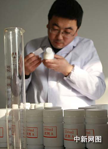 1月9日,檢測液態(tài)奶中是否含有三聚氰胺的化學法快速檢測試劑盒在蘭州上市。這項技術由蘭州大學研發(fā),并于2008年11月7日通過了甘肅省科技廳組織的成果鑒定。生產商甘肅欣慶環(huán)保科技有限責任公司介紹,這種試劑盒不僅適用于乳品生產企業(yè)、基層奶站、基層質檢站等部門,而且可以進入家庭使用。據(jù)悉,日前,國內乳品公司已和生產商簽定了多批訂單,部分試劑盒即日發(fā)往省外。