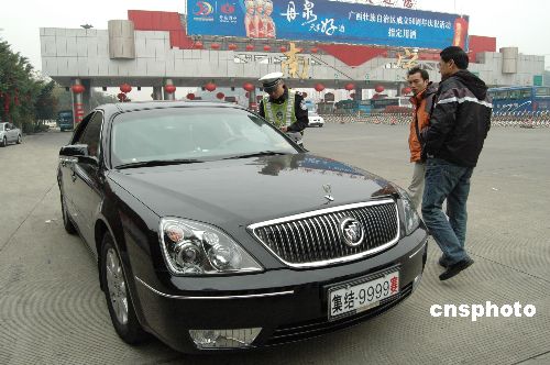 1月11日,當(dāng)日是中國春運(yùn)首日,廣西派出大量警力上路執(zhí)勤,查獲不少假牌套牌車輛。中新社發(fā) 王剛 攝