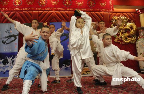 中國(guó)內(nèi)地戲劇作品將首次登陸百老匯舞臺(tái)。1月13日起,大型中國(guó)功夫劇《少林武魂》將在美國(guó)紐約百老匯連演二十四場(chǎng),從而為“中國(guó)在百老匯”系列演出拉開序幕。1月11日,《少林功夫》主要演員在紐約舉行見面會(huì)并集體“亮相”。中新社發(fā) 魏晞 攝