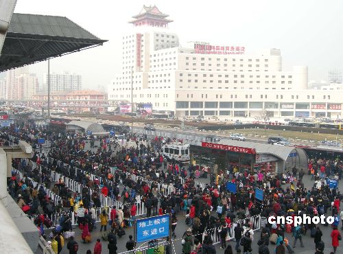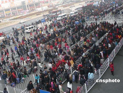 2009年1月21日,北京西站人頭攢動(dòng)、旅客如織。據(jù)北京西站方面透露,根據(jù)車次的售票情況看,21日單日上車客流將超過23萬人次,達(dá)到本次春運(yùn)節(jié)前的峰值。中新社發(fā) 玉龍 攝