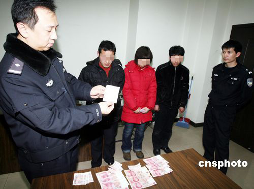 春節(jié)前夕,一些不法分子為逃避打擊,采取北京站內(nèi)聯(lián)系客源,站外倒票的方法,將接頭地點(diǎn)轉(zhuǎn)移到崇文門附近。北京崇文警方加大巡邏防控的密度,連續(xù)抓獲8名倒賣火車票的不法分子,起獲火車票14張,非法獲利近2000元,陜西來(lái)京人員王曉龍等8人被治安拘留。中新社發(fā) 胡建強(qiáng) 攝
