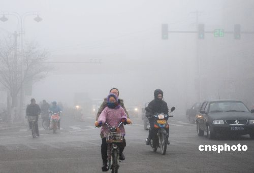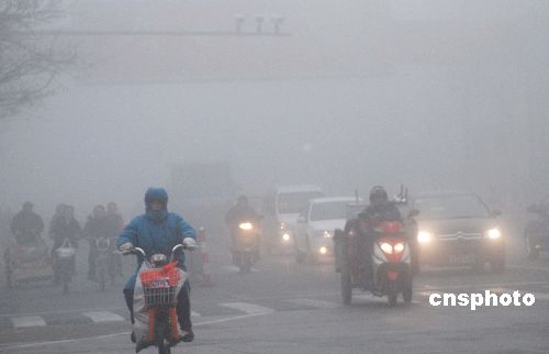 2009年2月1日(正月初七),蘇北贛榆縣境內(nèi)遭遇新春首場(chǎng)大霧,能見(jiàn)度較低,當(dāng)?shù)亟煌ü膊块T(mén)迅速啟動(dòng)應(yīng)急預(yù)案,組織干警疏通行人和車輛,確保行人車輛安全無(wú)事故。中新社發(fā) 朱代桂 攝