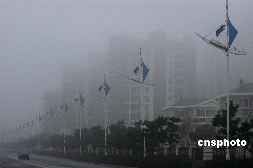 2月2日,江蘇連云港大部分地區(qū)遭遇持續(xù)大霧天氣,城區(qū)大霧彌漫,能見度較低,最低能見度不足50米,境內(nèi)多條高速公路封閉,給當(dāng)?shù)厥忻癯鲂屑敖煌ㄟ\(yùn)輸帶來影響。當(dāng)?shù)貧庀蟛块T發(fā)布了大霧黃色預(yù)警,交通安全部門提醒旅客要注意出行安全。中新社發(fā) 王春 攝