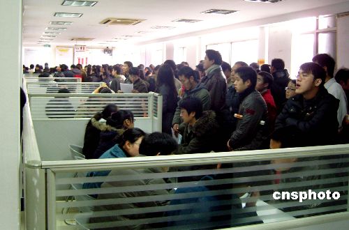 2月3日,杭州新年首場招聘會(huì)開場,小小的招聘會(huì)廳內(nèi)擠滿渴望就業(yè)的人們。目前就業(yè)形勢嚴(yán)峻,供仍遠(yuǎn)遠(yuǎn)大于求。中新社發(fā) 王磊 攝