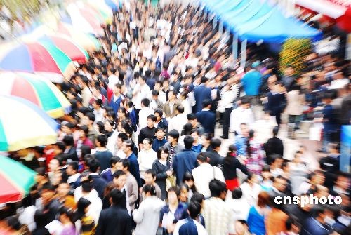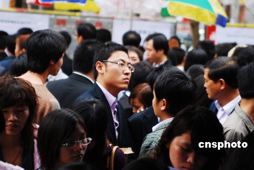 2月4日,2009年春節(jié)過后,海南省人才交流市場的首場人才交流會在?谌瞬沤涣髦行呐e行。共有140多家用人單位進場招聘,提供近3000個工作崗位。截止記者發(fā)稿時統(tǒng)計,已經(jīng)有六千多名求職者到招聘會現(xiàn)場。中新社發(fā) 周運杰 攝
