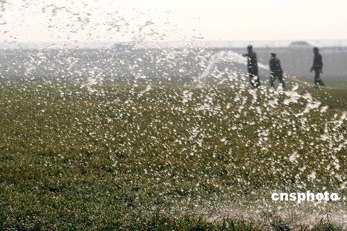 2月4日,河南許昌市禹州市小呂村村民在澆灌麥田。針對日益嚴重的旱情,許昌掀起抗旱保苗的高潮,爭取把旱災(zāi)損失降到最低限度。中新社發(fā) 牛書培 攝