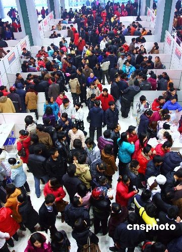 2月6日,江蘇省海安縣舉行“春天的陽光”農民工就業(yè)專場招聘會,125家用人單位3600多個崗位,吸引了18000多名農民工前來應聘。中新社發(fā) 仇穩(wěn)山 攝