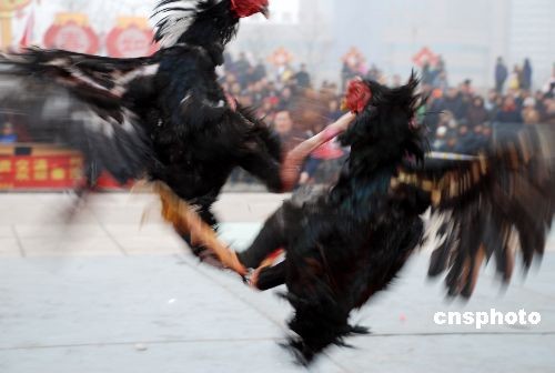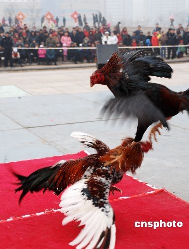2月7日,元宵節(jié)臨近,斗雞大賽在青島鳳凰島民間藝術(shù)節(jié)舉行,這一流行于古代宮廷的娛樂活動走進(jìn)民間,引來了眾多市民觀看。中新社發(fā) 俞方平 攝