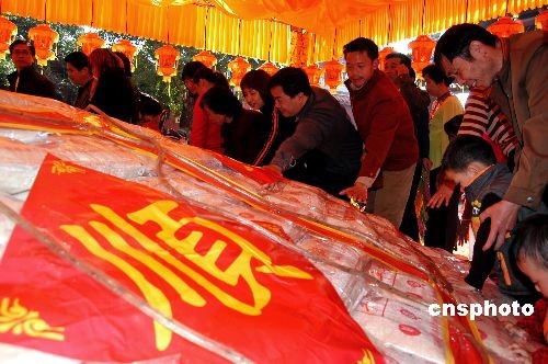 2月9日,元宵節(jié)澎湖特有的“乞龜”民俗在福建泉州天后宮舉行盛大的“平安乞龜”活動,為兩岸鄉(xiāng)親送上元宵祝福。中新社發(fā) 傅丹丹 攝
