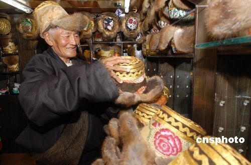 2月22日,藏歷新年馬上就要到了,65歲的老人多吉專門來到西藏拉薩八廓東街一家金氈帽店鋪為自己選購帽子。他說,如今生活條件好了,生活水平也逐漸提高,能夠在晚年享受這美好時光,他感覺非常幸福。中新社發(fā) 龍昊 攝