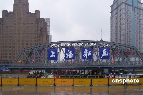 2月25日,經(jīng)過一年修繕的上海外白渡橋回到它已安然矗立百年的蘇州河河口,開始復(fù)位工程。中新社發(fā) 周東潮 攝