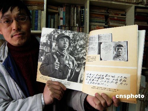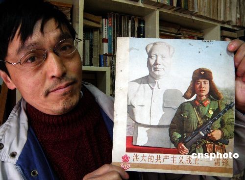 2009年3月4日,湖北宜昌市鐵路壩古玩市場的朱保國先生展示自己珍藏的《偉大的共產(chǎn)主義戰(zhàn)士--雷鋒》畫冊。該畫冊是解放軍畫報社編輯、上海人民出版社1977年12月首次出版的。雷鋒,1940年12月18日生,1962年8月因公殉職。雷鋒是一位偉大的共產(chǎn)主義戰(zhàn)士、全心全意為人民服務(wù)的楷模。每年3月5日是全民學雷鋒的日子。中新社發(fā) 劉君鳳 攝