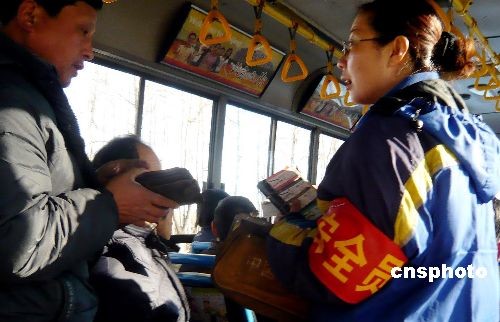 3月9日,為確保正在北京召開(kāi)的人大、政協(xié)“兩會(huì)”治安安全,北京公交車上的司售人員加強(qiáng)了安全防范。中新社發(fā) 錢(qián)興強(qiáng) 攝