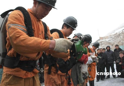 3月12日,位于甘肅省武威市天祝縣境內(nèi)的一座煤礦發(fā)生事故,被困井下的6名當班工作人員全部遇難。該煤礦屬于天祝隆德煤業(yè)有限責任公司所有,證照齊全,1996年建成投產(chǎn),年設計生產(chǎn)能力6萬噸。今年2月13日,該礦提出申請井下維修報告,16日獲批準進行維修,至事故發(fā)生時仍在維修整改之中,并未投入生產(chǎn)。圖為救援人員作下井前的準備工作。中新社發(fā) 殷春永 攝