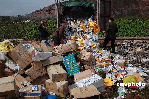 3月13日,重慶市璧山縣工商、質(zhì)監(jiān)、煙草等相關(guān)部門將收繳的假冒偽劣商品集中銷毀。據(jù)悉,此次被銷毀的偽劣商品有化妝品、日用品、假煙、假酒等539個品種。中新社發(fā) 謝捷 攝