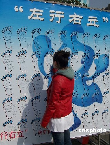 3月20日,上海黃浦區(qū)青年迎世博志愿者特別行動在南京路地鐵下沉式廣場舉行。現(xiàn)場設立迎世博文明墻,邀請市民參與世博文明倡議。并進行世博志愿者,左行右立地鐵文明乘梯、造血干細胞捐獻等志愿者的招募活動。中新社發(fā) 周東潮 攝
