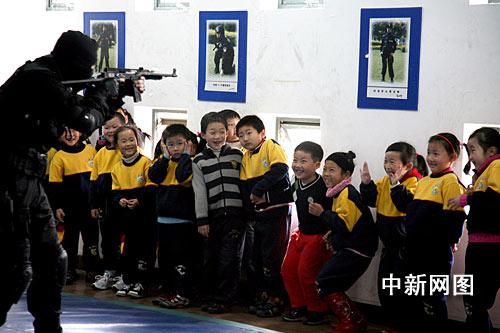 圖:外來務(wù)工人員子弟在滬感受特警雄風(fēng)