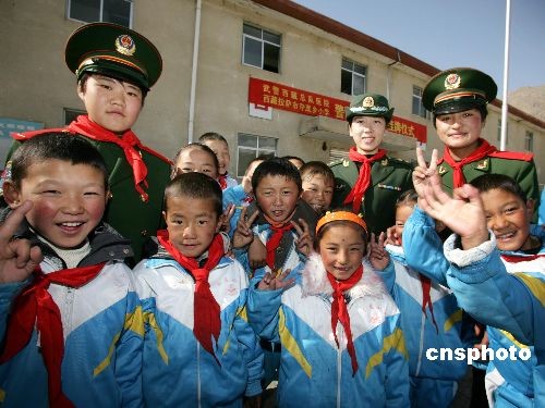 3月21日,武警西藏總隊(duì)醫(yī)院官兵與西藏拉薩奪底鄉(xiāng)中心小學(xué)開展了警民共建捐資助學(xué)活動,該醫(yī)院官兵共向奪底鄉(xiāng)中心小學(xué)捐資2萬元現(xiàn)金,贈送價(jià)值2萬余元的學(xué)習(xí)電腦。中新社發(fā) 錢檬 攝