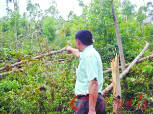 昨日(16日)凌晨2時許,一股強勁的龍卷風卷著冰雹突襲了臺山市廣海鎮(zhèn)中興村委會一帶。所到之處損毀嚴重,數(shù)千畝山林遭腰斬,村中40多畝的冬瓜棚全部坍塌,部分瓦房被龍卷風卷著的冰雹“開”了天窗。