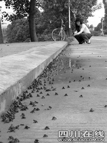 事發(fā)眉山丹棱縣豐樂水庫邊,專家稱此乃蟾蜍遷徙生長的自然現(xiàn)象