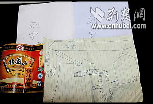 昨日(21),洪山區(qū)(武漢)南湖工商所接到舉報(bào),在該區(qū)紅旗村一臨時搭建的民房中查獲一個制假作坊,收繳大量假名牌醋等。據(jù)查,作坊老板劉某是安陸人,今年2月起與妻子在此租房,以每袋2毛錢購進(jìn)散裝醋精,兌水炮制“名醋”,低價賣給周邊副食店和小超市。執(zhí)法人員現(xiàn)場發(fā)現(xiàn)一幅筆法幼稚的漫畫:一輛坦克的大炮直指2瓶“名醋”。劉某的妻子稱,這是她11歲的兒子為諷刺他們制假而作。(張樂克 徐永峰 章敏)