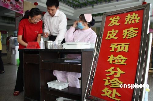 5月4日,山東聊城東昌府區(qū)婦幼保健院分診臺(tái)工作人員在對(duì)前來就診的患者進(jìn)行預(yù)檢分診。針對(duì)當(dāng)前甲型H1N1流感防控形勢的日益嚴(yán)峻,山東聊城市各醫(yī)療機(jī)構(gòu)按照《預(yù)診分診管理辦法》,設(shè)立發(fā)熱門診和預(yù)檢分診處,對(duì)不明原因肺炎和流感樣病例進(jìn)行及時(shí)監(jiān)測。中新社發(fā) 孔政 攝
