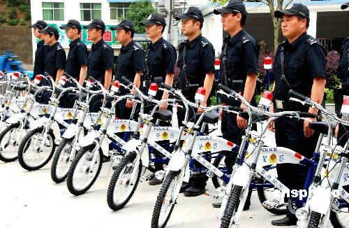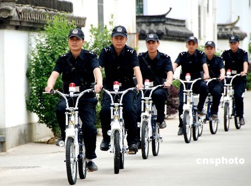 5月5日,江西婺源的大街小巷的城區(qū)出現(xiàn)了一支特警自行車治安巡邏隊。他們騎乘統(tǒng)一配發(fā)的輕便自行車,車前掛有“巡警110”標志,車后配備便民服務箱。為群防群治,共織平安網(wǎng),婺源縣公安局特警大隊由60人組成的一個特色 “警務自行車巡邏隊”,以適應該縣轄內(nèi)小街巷多、警車巡邏不易覆蓋的治安特點。同時利用自行車巡邏既環(huán)保、便捷、無噪音,又可增加古城小道的見警率,還避免了機動車頻繁流動造成的道路擁堵, 大大提高“走街串巷”治安巡防的效率,延伸了公安機關(guān)對社會面的防控觸角。 中新社發(fā) 王國紅 攝