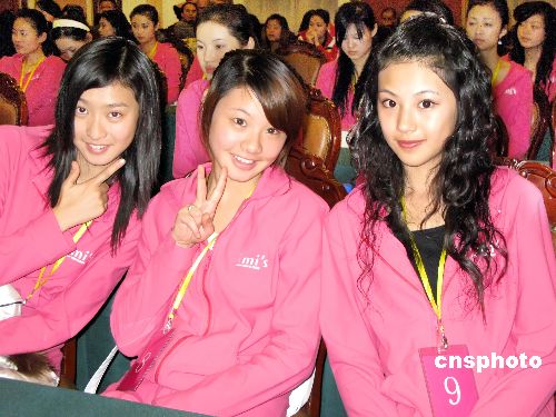 12月22日晚,2007中國(guó)內(nèi)衣模特大賽全國(guó)總決賽選手見面會(huì)在廣西南寧舉行。全國(guó)12個(gè)賽區(qū)的前三名共36位內(nèi)衣模特云集南寧。隨后他們將進(jìn)行為期一周的封閉訓(xùn)練。決賽將于12月28日至29日晚上10:30分進(jìn)行。中新社發(fā) 駱文剛 攝