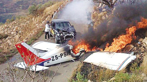 6月7日下午,南非約翰內(nèi)斯堡當(dāng)?shù)?0歲女子莫尼卡·布拉甘卡駕駛一輛福特小貨車在克魯吉斯多普機(jī)場(chǎng)附近的一條公路上行駛,汽車上還坐著另外一名叫做安娜·瓦林娜的女子和一名名叫托尼的男子。當(dāng)莫尼卡駕車行駛時(shí),她突然看到天空中有一架輕型飛機(jī),正朝她的小貨車筆直地俯沖下來(lái)!由于汽車行駛的公路非常狹窄,莫尼卡根本來(lái)不及避讓這架從天而降的輕型飛機(jī)!
