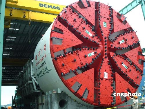 五月二十日上午,隨著“揚子二號”盾構(gòu)機的巨型刀盤轟鳴呼嘯著沖破最后一環(huán)冷凍層,中國鐵建十四局集團承建的國家“八六三”計劃科技示范工程、代表當今中國水下隧道建設最高水準之一的南京長江隧道左線順利貫通。南京長江隧道位于南京長江大橋和長江三橋之間,總長達到五千八百五十三米,設計為雙向六車道,行車時速八十公里,其中左右線盾構(gòu)隧道總長超過六千米,工程總投資近四十億元人民幣。它是迄今為止中國長江流域上工程技術(shù)難度最大、地質(zhì)條件最復雜、技術(shù)性難題和挑戰(zhàn)最多的世界級越江隧道工程。南京長江隧道施工采用了兩臺目前世界上最先進的泥水平衡盾構(gòu)機掘進,刀盤直徑為14.93米,相當于5層樓高,超過了目前世界上已經(jīng)建成的最大直徑隧道——荷蘭的格林哈特隧道。中新社發(fā) 李佩山 攝