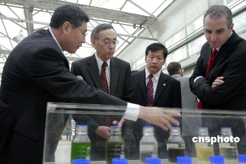 7月17日,美國(guó)能源部長(zhǎng)朱棣文來(lái)到河北廊坊,參觀了民營(yíng)清潔能源企業(yè)——新奧集團(tuán)的煤基能源生產(chǎn)“零排放”技術(shù)系統(tǒng)試驗(yàn)中心和光伏太陽(yáng)能電池生產(chǎn)線(xiàn),對(duì)新奧集團(tuán)的二氧化碳減排技術(shù)十分關(guān)心。新奧集團(tuán)創(chuàng)建于1989年,致力于清潔能源技術(shù)的開(kāi)發(fā)、應(yīng)用與服務(wù)。中新社發(fā) 盛佳鵬 攝