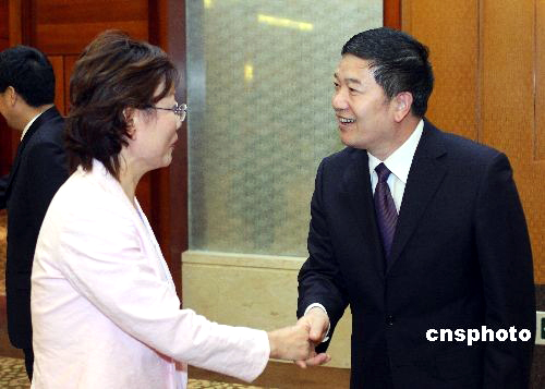 第七屆東盟華商投資西南項目推介會暨亞太華商論壇于6月4日至6月6日在昆明舉行。此次報名參會的五百余名嘉賓來自泰國、新加坡、馬來西亞、港澳臺等三十個國家和地區(qū),參會人數與地區(qū)為歷屆之最。東盟華商投資西南項目推介會暨亞太華商論壇目前已成功舉辦六屆,累計簽署二十五個正式合同,總投資十六點七億美元。圖為6月4日,國僑辦副主任任啟亮(右)在昆明會見參加第七屆東盟華商投資西南項目推介會暨亞太華商論壇的知名華商領袖。 中新社發(fā) 劉冉陽 攝