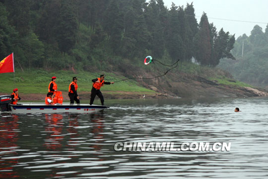 7月10日上午,為檢驗集訓效果,女子特警隊進行了抗洪搶險救災實兵演練。演練主要對沖鋒舟水上編隊行進、水上搜救、轉(zhuǎn)移輸送群眾等內(nèi)容進行了演示。演練中,特警隊員們行動迅速、精神飽滿,發(fā)揚了特別能吃苦、特別能戰(zhàn)斗、特別能協(xié)同的精神,把練指揮、練體能、練協(xié)同貫穿于演練全過程,切實提高了抗洪搶險救災應急處置能力,為完成抗洪搶險救災任務打牢了堅實的基礎(chǔ)。為提高部隊在各種復雜條件下的抗洪搶險救災能力,扎實做好抗洪搶險救災準備工作,武警四川省總隊女子特警隊在距成都市區(qū)30公里外的龍泉湖舉行了為這次期一周的船艇駕駛集訓,錘煉了部隊抗洪搶險救災能力。 于傳濤 攝影