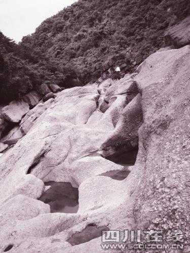 專(zhuān)家推測(cè),冰川運(yùn)動(dòng)在這里形成了一個(gè)很大的冰床,冰水滴水穿石,形成一個(gè)個(gè)圓圓的冰臼!(張發(fā)政 高志農(nóng))