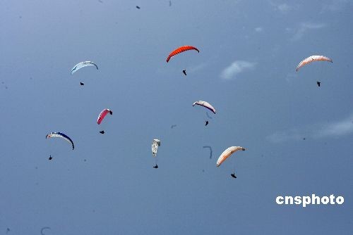 5月29日上午,近百頂滑翔傘在河南林州爭(zhēng)奇斗艷,蔚為壯觀。當(dāng)日,2009滑翔傘世界杯熱身賽暨全國(guó)滑翔傘優(yōu)秀選手賽在河南安陽(yáng)林慮山國(guó)際滑翔基地正式開(kāi)賽,來(lái)自俄羅斯、法國(guó)、德國(guó)、日本等15個(gè)國(guó)家和地區(qū)的滑翔界“明星大腕”與其他選手一道進(jìn)行角逐。