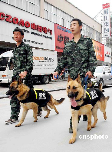 近日,浙江溫州市樂(lè)清公安局首次將警犬投入到社會(huì)治安管理中。首批4條警犬分為兩組:一組負(fù)責(zé)樂(lè)清柳市車(chē)站周邊的巡邏,另一組配合警方設(shè)卡和對(duì)可疑人員的追蹤、圍堵。2009年4月份,樂(lè)清警方專(zhuān)門(mén)成立了警犬基地,由保安公司負(fù)責(zé)飼養(yǎng)與日常管理。目前,警犬基地已從南京軍區(qū)購(gòu)買(mǎi)20只警犬,每只身價(jià)都在萬(wàn)元以上,多為體型強(qiáng)壯勻稱(chēng)、勇敢無(wú)畏的德國(guó)牧羊犬。據(jù)介紹,這20只護(hù)衛(wèi)犬主要用于溫州樂(lè)清的警戒、巡邏等,其中4只首批受訓(xùn)成功投入使用。中新社發(fā) 許勛磊 攝