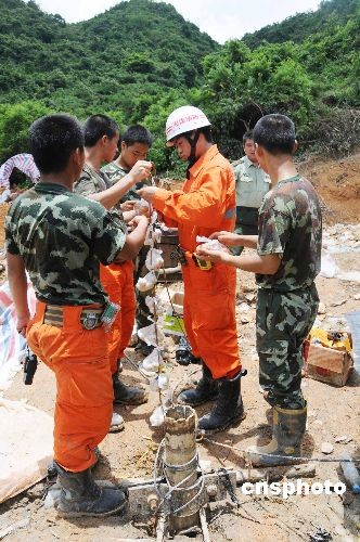 6月7日,發(fā)生塌方事故的三亞繞城高速公路隧道救援工作繼續(xù)緊張有序進(jìn)行。6月6日12時(shí)許,救援人員打通了一條通向被困人員所在處的補(bǔ)給通道,救援人員每隔三個小時(shí)左右給被困的8名施工人員進(jìn)行一次補(bǔ)給。目前,被困人員在隧道內(nèi)有充足的食物和飲用水,情緒穩(wěn)定,耐心等待救援。圖為7日13許,消防官兵通過補(bǔ)給通道給被困8名施工人員進(jìn)行第8次補(bǔ)給,補(bǔ)給的食物包括雞蛋、火腿腸、牛奶、“紅!憋嬃稀⑿』\包,以及救援時(shí)將用到的防毒面具。中新社發(fā) 胡劍兵 攝