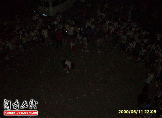 圖片時間憲攝拍攝于6月11日,發(fā)帖網(wǎng)友“D222”稱,晚上十點左右,山東某高校一男生宿舍樓外,一名女生用蠟燭擺成兩個串在一起的心型圖案,向該樓一名男生示愛。當時正是下晚自習時間,這一大膽舉動吸引了上千人圍觀。“此女自始至終神情淡定,慢慢的用蠟燭擺好心形,并不時地向男宿舍樓上瞻望,還大聲喊男生的名字。樓下樓上的起哄聲、喝彩聲此起彼伏!本W(wǎng)友“D222”在帖子里這樣描述。據(jù)知情網(wǎng)友透露,男生自始至終都沒有露面。