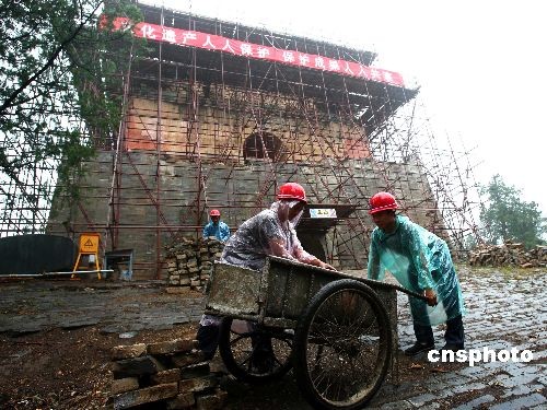 7月17日,已經(jīng)有五百年歷史的明十三陵茂陵啟動歷史上規(guī)模最大的修繕,工程投資1200多萬元,預(yù)計明年完工。據(jù)悉,經(jīng)過多年的風(fēng)雨侵蝕,明茂陵已殘破不堪,其主要建筑之一的明樓更是破損嚴(yán)重。此次大修將對陵門、陵墻、明樓等重點(diǎn)部分進(jìn)行修繕,并本著修舊如舊的原則,按照歷史資料恢復(fù)其原貌,不過修繕僅針對地上部分進(jìn)行,不涉及地下部分。中新社發(fā) 富田 攝