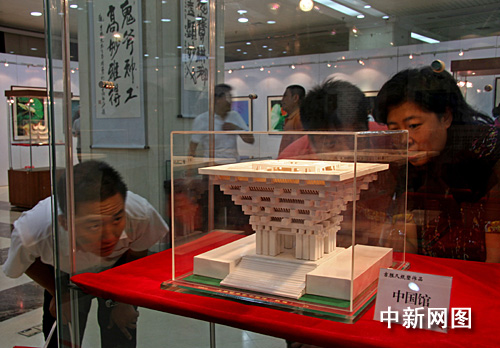 7月18日,當(dāng)上海世博會(huì)中國(guó)館“東方之冠”正處收尾階段之時(shí),北京市崇文區(qū)人大主任吉?jiǎng)倬玫募埶茏髌贰爸袊?guó)館”卻已完工。今天這一作品在首都圖書館展覽中心亮相。紙塑“中國(guó)館”長(zhǎng)三十厘米,寬三十厘米,高二十八厘米,是用普通的白卡紙耗時(shí)一個(gè)多月時(shí)間制作完成的。中新社記者 甄雪原 攝