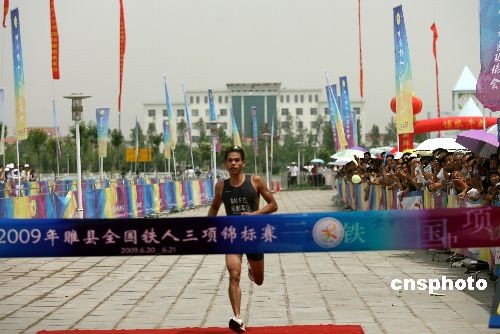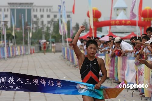 6月20日,由國(guó)家體育局自行車擊劍運(yùn)動(dòng)管理中心、中國(guó)鐵人三項(xiàng)運(yùn)動(dòng)協(xié)會(huì)、河南省體育局、商丘市人民鄉(xiāng)政府主辦,睢縣人民政府承辦的2009年中國(guó)鐵人三項(xiàng)錦標(biāo)賽在河南睢縣開賽。來自國(guó)內(nèi)的45支代表隊(duì)、600余名運(yùn)動(dòng)員參與角逐。中新社發(fā) 王中舉 攝