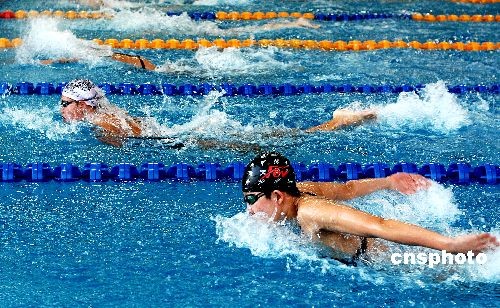 6月25日,為期五天的第十一屆全運會游泳預(yù)選賽暨2009年全國青年游泳錦標(biāo)賽落下帷幕。本次比賽為第十一屆全運會游泳決賽的資格賽,分別在天津和大連兩個賽區(qū)舉行,達(dá)標(biāo)運動員取得了將于今年十月份舉行的全運會游泳決賽的資格。天津賽區(qū)有江蘇、浙江、安徽、福建、廣東等14支代表隊的252名選手報名參賽;大連賽區(qū)有北京、遼寧、上海、貴州、解放軍等12支代表隊的314名選手報名參賽。中新社發(fā) 劉德斌 攝