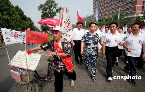 7月5日,在第十一屆全運(yùn)會(huì)開幕式倒計(jì)時(shí)100天來臨之日,第十一屆運(yùn)動(dòng)會(huì)組委會(huì)組織了全民“健步迎全運(yùn)活動(dòng)”啟動(dòng)儀式,曾為山東省地方經(jīng)濟(jì)建設(shè)做出突出貢獻(xiàn)的濟(jì)空部隊(duì)官兵作為駐軍代表參加了活動(dòng)。中新社發(fā) 崔文斌 攝