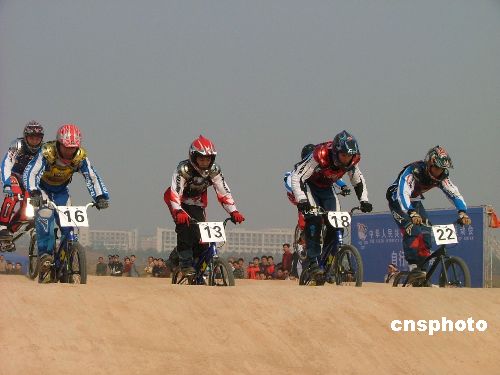 十月二十二日上午,第六屆全國(guó)城運(yùn)會(huì)BMX(小輪車(chē))男子越野賽在洛陽(yáng)賽區(qū)舉行,運(yùn)動(dòng)員們經(jīng)過(guò)幾個(gè)回合的預(yù)賽較量后進(jìn)入決賽,香港運(yùn)動(dòng)員王史提芬率先奪得男子冠軍,煙臺(tái)市的孫越、大同市的任超分列二、三名。中新社發(fā) 史寶銀 攝