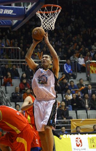 十月二十八日,新疆廣匯隊(duì)在烏魯木齊紅山體育館,主場(chǎng)迎戰(zhàn)陜西東盛隊(duì),最終以一百一十五比一百零一戰(zhàn)勝對(duì)手,取得新賽季的開(kāi)門紅。圖為,剛剛加盟新疆廣匯隊(duì)不久的中鋒巴特爾,在比賽中突破對(duì)方防線上籃。中新社發(fā) 劉新 攝