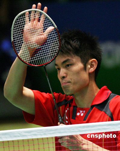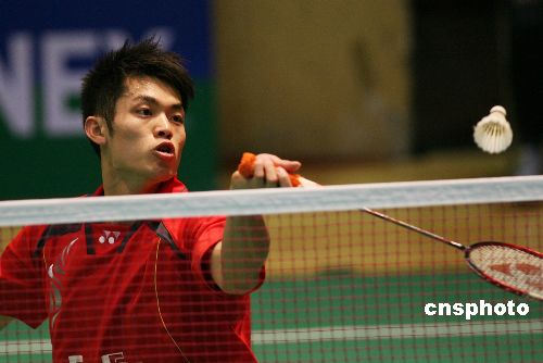 十一月二十九日,二零零七中國香港羽毛球超級賽進行正賽第二輪的比賽,頭號種子林丹以二比零戰(zhàn)勝日本選手佐藤翔治,輕松晉級。中新社發(fā) 武仲林 攝