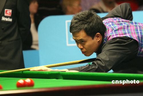當(dāng)?shù)貢r(shí)間12月11日晚,英國泰爾福德,中國香港斯諾克選手傅家俊以九比二大比分戰(zhàn)勝對手喬·佩里,首次殺入斯諾克英錦賽八強(qiáng)。圖為傅家俊在比賽中。中新社發(fā) 李鵬 攝