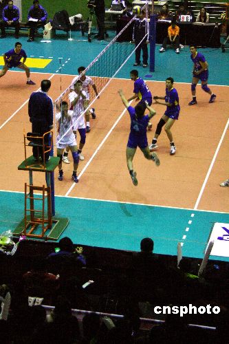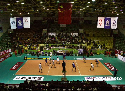 12月15日,2007-2008賽季全國男排聯(lián)賽遼寧對八一的比賽在錦州體育館舉行,最終遼寧隊苦戰(zhàn)五局以3比2力挫八一。中新社發(fā) 李張建 攝