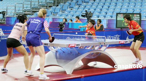 12月18日,奧運(yùn)測(cè)試賽乒乓球女團(tuán)比賽揭幕。第三場(chǎng)進(jìn)行的是雙打比賽,中國(guó)隊(duì)派出郭躍/李曉霞這對(duì)雙打組合,而歐洲聯(lián)隊(duì)一方則是鮑羅斯和孫禎琦的組合,雖然首局在拿到局點(diǎn)的情況下被對(duì)手以12比10逆轉(zhuǎn),但郭躍和李曉霞調(diào)整心態(tài)的速度非?,她們以11比7,11比5和11比2連下三局,以3比1戰(zhàn)勝鮑羅斯/孫禎琦,從而使得中國(guó)女隊(duì)以3比0輕取歐洲聯(lián)隊(duì),取得本次邀請(qǐng)賽的開門紅。中新社發(fā) 博芽影像 攝